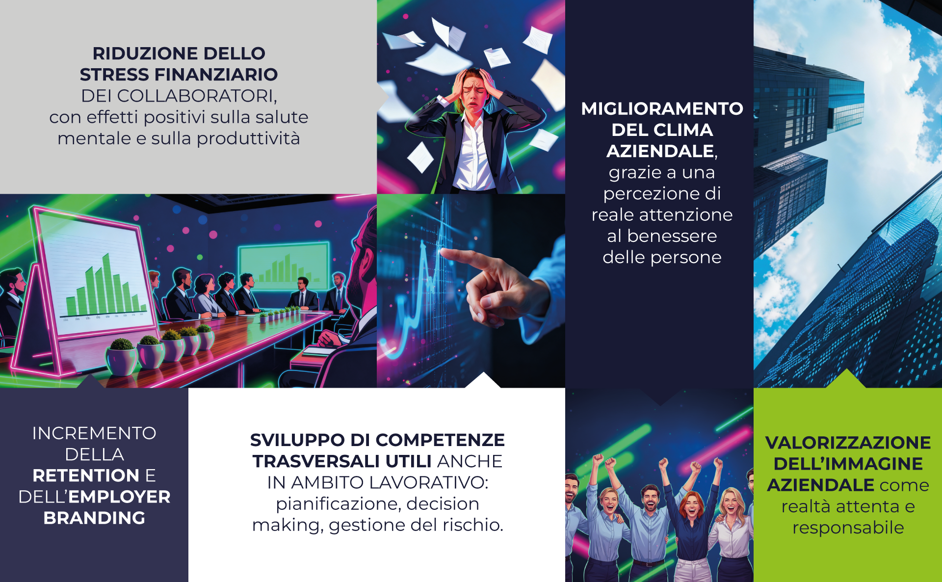 Realizzato a partire dal libro “Capire la Finanza Personale” di Roberto Pugliesi e Enrico Maria Cervellati, il corso è pensato per tradurre la complessità del mondo finanziario in un linguaggio accessibile, concreto e utile a tutti.Benefici dipendenti e azienda